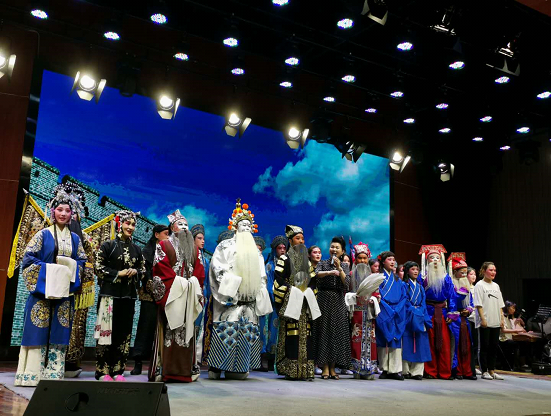 省越调剧团的艺术家们表演了越调折子戏《李天保娶亲》《拾玉镯》和《收姜维》等传统剧目选段。艺术家们时而悠扬、时而铿锵的唱腔,时而优雅、时而威武的身段将一个个是与非、善与恶、忠与奸的故事演绎的惟妙惟肖,生动传递了中国人民讲仁爱、重民本、守诚信、崇正义、尚和平的崇高价值追求,精彩的演出不时引起全场观众的情感共鸣,赢得阵阵掌声。中国戏曲梅花奖获得者,河南省剧协副主席、河南越调剧团团长申小梅老师也来到演出现场,一曲《老子》选段表演将整场演出推向了最高潮。演出在现场观众经久不息的掌声中圆满落下帷幕。