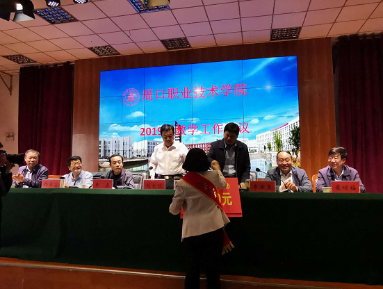 会议第二阶段,副校长李庶泉宣读对信工学院刘蕴老师的表彰决定,党委书记刘士欣、校长李清臣为刘蕴老师颁奖。