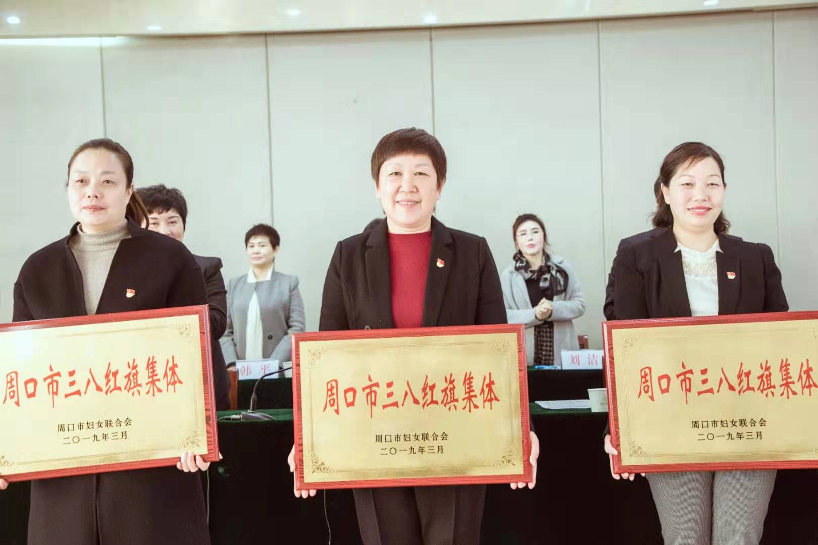 3月5日上午,我市纪念“三八”国际妇女节109周年暨妇联三届九次执委(扩大)会召开,总结全市2018年妇女工作,部署2019年工作任务,表彰先进典型,动员全市广大妇女为新目标奋斗,在新征程建功,奋力谱写周口高质量跨越发展巾帼篇章。在对我市经济和社会发展中做出突出贡献的“三八红旗手”、“三八红旗集体”、“巾帼文明岗”和“妇联系统先进集体”等先进典型的表彰中,金年会获“三八红旗集体”荣誉称号。