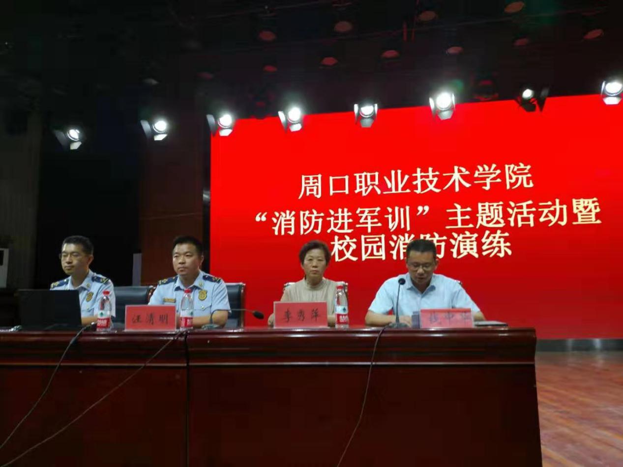 按照《河南省教育厅、河南省消防总队关于做好2019年学校消防安全教育工作的通知》、《河南省教育厅办公室转发省防火安全委员会关于印发“防风险除隐患保平安迎大庆”消防安全专项行动宣传工作实施方案的通知》文件精神,9月18日下午,金年会邀请周口市开发区消防救援大队官兵来校开展“2019年消防进军训”活动。2019级新生和军训教官共同参加了活动。