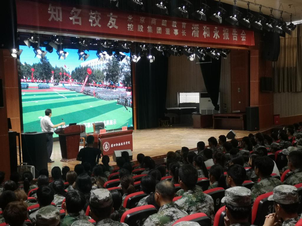 为了激发新生们积极上进的热情,树立正确的目标并把握时机,产生模范效应。9月24日下午,以“母校,我人生的起点”为题的报告会,在金年会jinnianhuicom开元校区报告厅举行,并在全校五个区城进行现场直播,参加学生近5000人,报告会邀请到金年会知名校友---北京商鲲教育控股集团创始人党委书记、董事长潘和永。报告会由党委副书记李森主持。