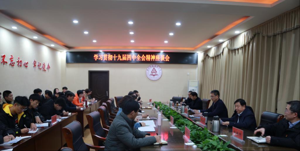 宣讲报告结束后,赵锡昌同志和部分师生代表就如何结合自身实际,学习贯彻落实党的十九届四中全会精神举行了座谈。现场气氛热烈,与会人员深受鼓舞,纷纷表示要以党的十九届四中全会精神为指引,把全会精神落实到岗位上,体现在行动中,与伟大时代同频共振。