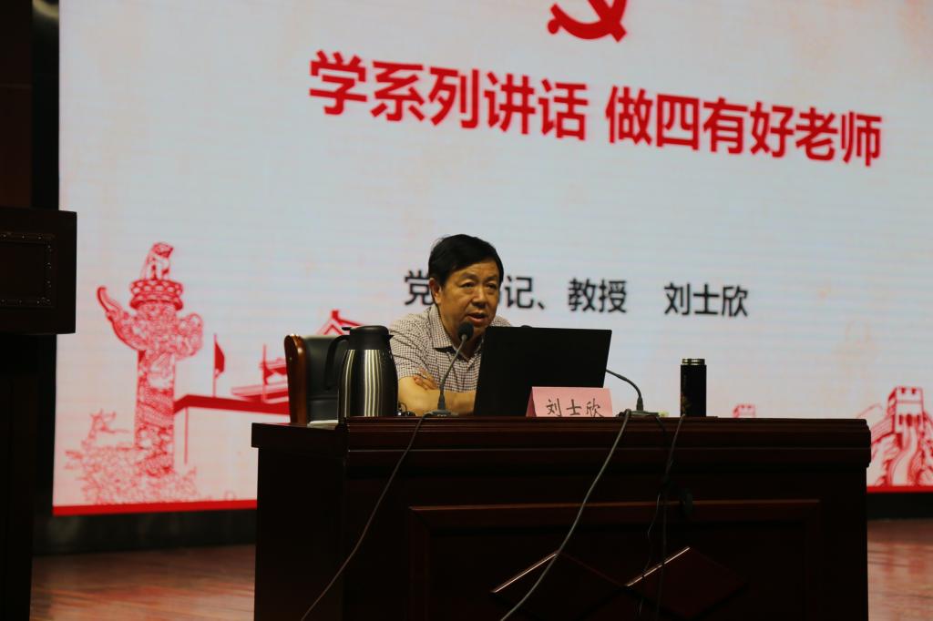 在随后进行的首场培训报告上,校党委书记刘士欣以“学系列讲话 ,做四有好老师”为题做了精彩报告。刘士欣指出,学高为师,身正为范,作为一名教师一定要按照习近平总书记的要求,争做“四有好老师”。一、要有理想信念。广大教师要始终同党和人民站在一起,自觉做中国特色社会主义的坚定信仰者和忠实实践者,忠诚于党和人民的教育事业。要用好课堂讲坛,用好校园阵地,用自己的行动倡导社会主义核心价值观,用自己的学识、阅历、经验点燃学生对真善美的向往。二、要有道德情操。老师对学生的影响,离不开老师的学识和能力,更离不开老师为人处世、于国于民、于公于私所持的价值观。老师是学生道德修养的镜子。好老师应该取法乎上、见贤思齐,不断提高道德修养,提升人格品质,并把正确的道德观传授给学生。三、要有扎实学识。扎实的知识功底、过硬的教学能力、勤勉的教学态度、科学的教学方法是老师的基本素质,其中知识是根本基础。好老师还应该是智慧型的老师,具备学习、处世、生活、育人的智慧,能够在各个方面给学生以帮助和指导。四、要有仁爱之心。爱是教育的灵魂,没有爱就没有教育。好老师要用爱培育爱、激发爱、传播爱,通过真情、真心、真诚拉近同学生的距离,滋润学生的心田。