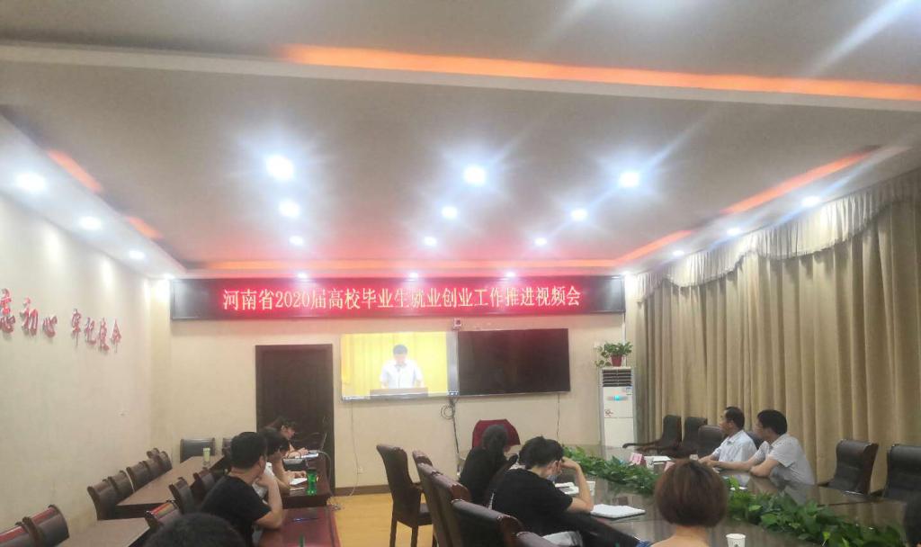 6月29日下午,金年会在开元校区第三会议室组织收看河南省2020届高校毕业生就业创业工作推进视频会,校长李清臣、党委副书记、工会主席李森、招生就业处负责人、全体就业专干等收看了视频会。