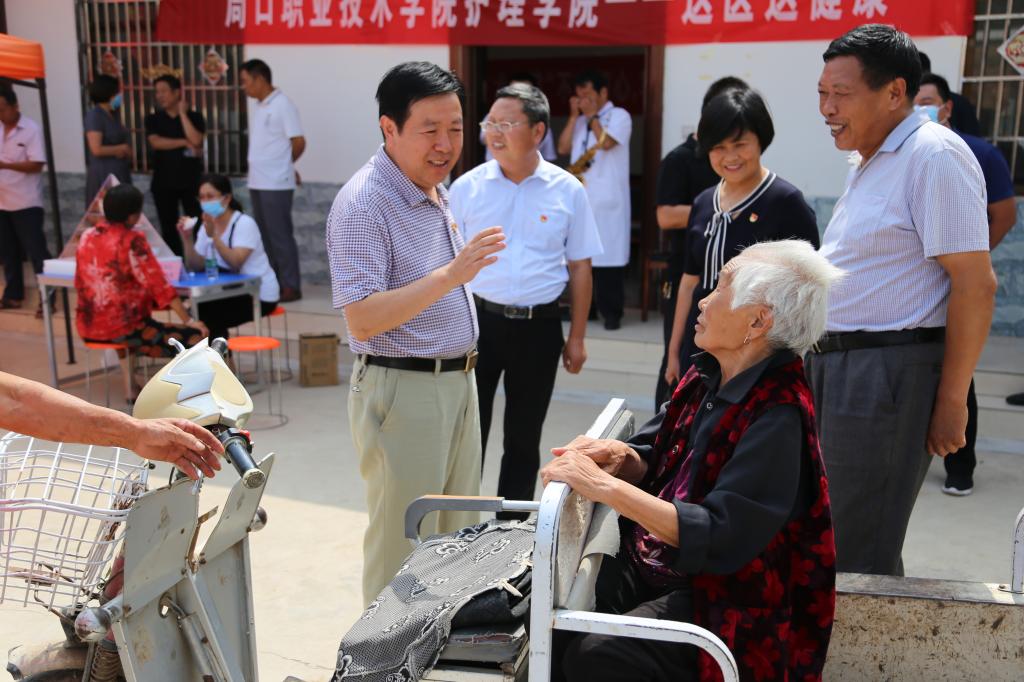 为切实解决贫困群众看病难问题,充分发挥金年会在医疗卫生方面的专业和医疗优势,提高贫困人群健康水平。7月4日上午,校党委书记刘士欣、校长李清臣、党委副书记赵振然、副校长李庶泉、纪委书记唐永宾带领校党政办、组织统战部、宣传部、计财处、后勤处、附属医院、护理学院等部门负责同志及护理学院党员志愿者专程赴金年会对口帮扶的沈丘县新安集镇三大夫营村开展金年会jinnianhuicom“不忘初心、牢记使命”主题党日暨党员送医下乡,助推健康扶贫活动。
