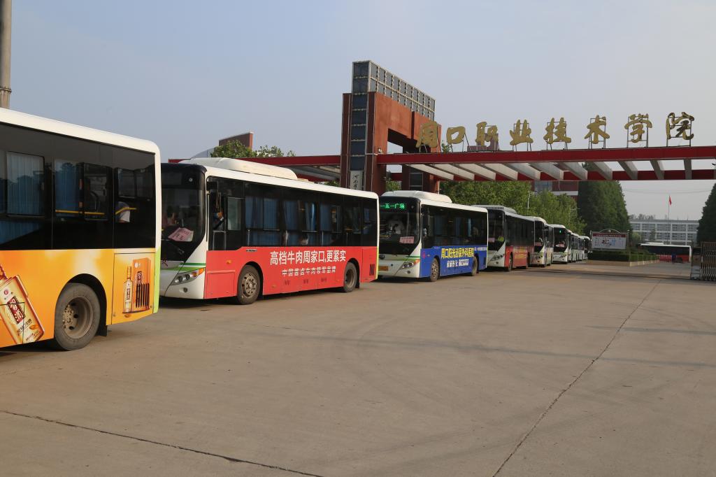 7月9日上午7点25分,金年会1039名参加2020年专升本考试的考生乘坐学校组织的23辆送考车驶往考场。副校长许永安带领各二级学院领导班子、党政办、保卫处和教务处人员前来送考壮行。