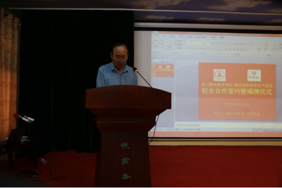 随后,校党委书记刘士欣、随县副县长陈新,校长李清臣、随县抱朴谷养生产业园董事长杜天奇共同为双方校企合作揭牌。