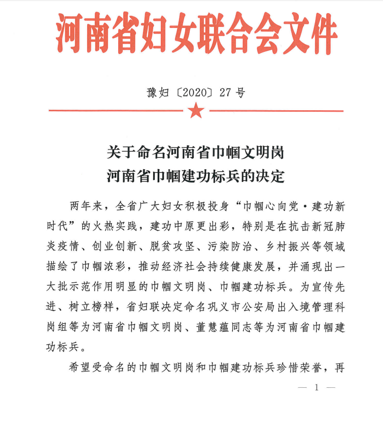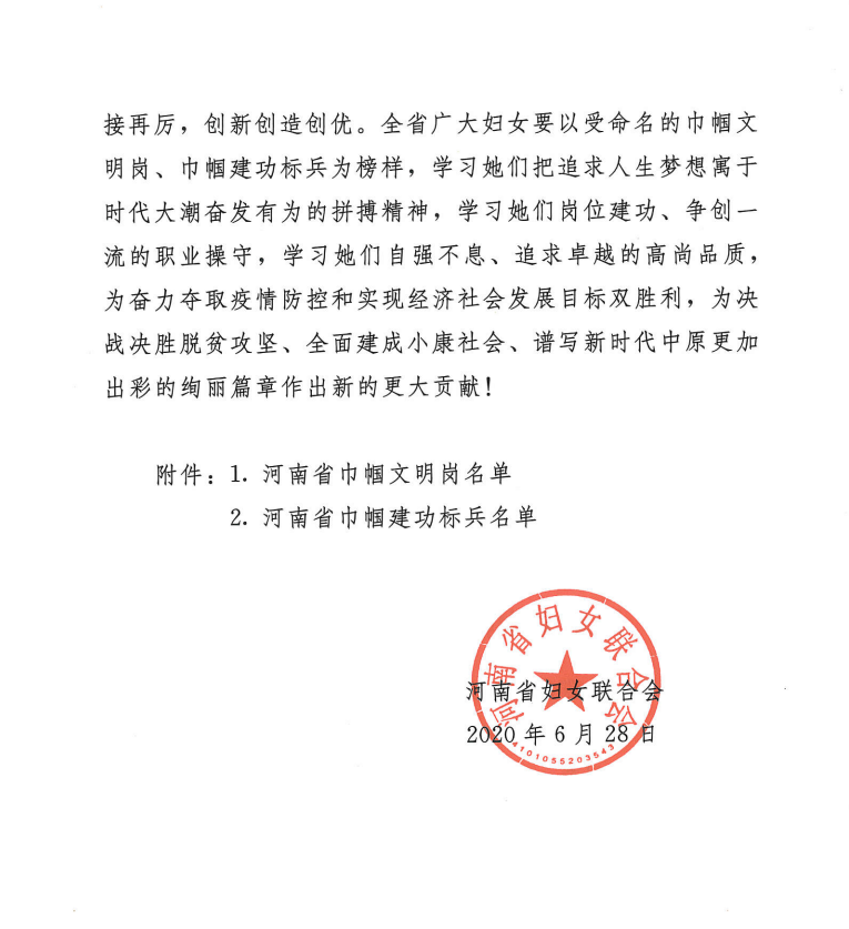 日前,从河南省妇女联合会传来喜讯,金年会妇联被评选为“河南省巾帼文明岗”称号。据悉,此次评选的“河南省巾帼文明岗”“河南省巾帼建功标兵”是两年来,全省广大妇女积极投身“巾帼心向党 建功新时代”的火热实践,特别是在抗击新冠肺炎疫情、创业创新、脱贫攻坚、污染防止、乡村振兴等领域中涌现出的一批示范作用明显的巾帼英雄,她们描绘了巾帼浓彩,推动了经济社会持续健康发展。