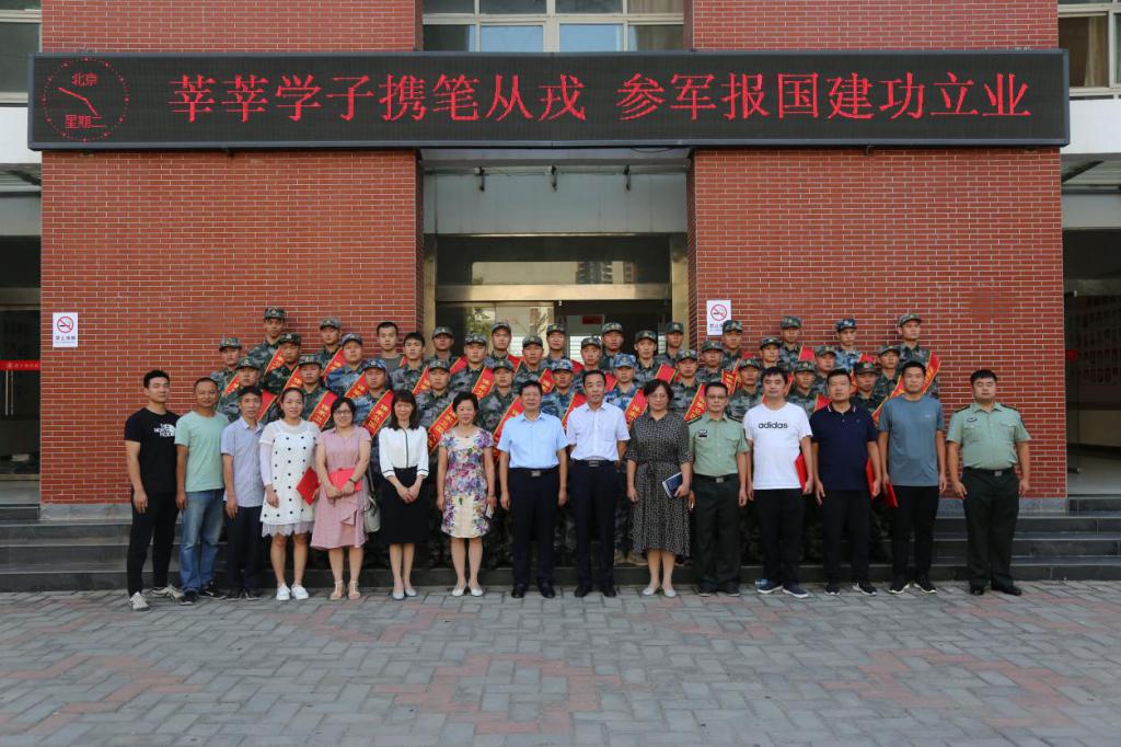 会后,校长李清臣、校党委副书记李森和相关职能部门负责人等与佩戴绶带和光荣花的新兵合影留念。