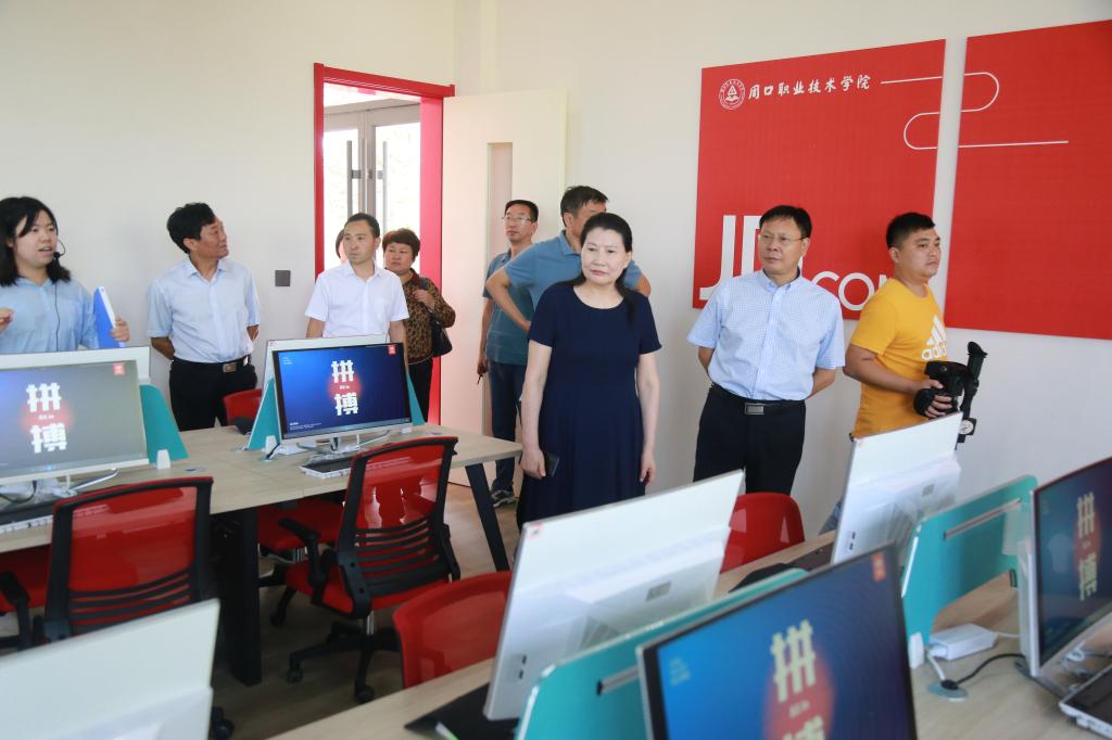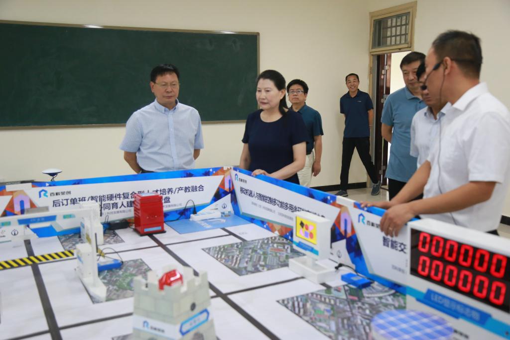 李海燕一行先后实地考察学校3D智能打印实训室、工业智能机器人实训室、嵌入技术实训室、无人机技术实训室、建筑专业实训室、京东电商人才孵化基地、体育馆等,详细了解学校人才培养、校企合作以及服务地方区域经济发展情况。校长李清臣详细介绍了金年会的基本情况,对近年来所做的主要工作及取得的成绩、存在的问题和下一步打算等方面作了工作汇报。