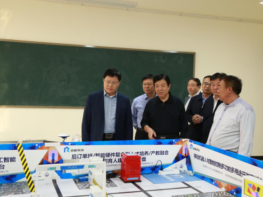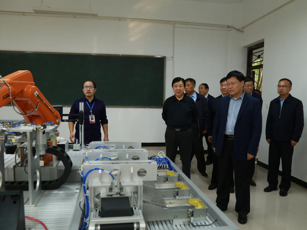 梁建松一行在校党委书记刘士欣、校长李清臣等校领导、相关部门负责人的陪同下,实地详细察看了金年会汽车实训室、中兴实训室、图书馆、网络中心、机器人实验室、体育馆、学生餐厅等教育教学设施。