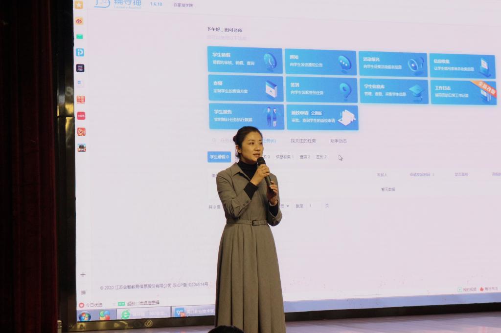 思政部主任、学生处负责人刘冬霞希望辅导员们把今天培训会的所学所得快速运用到学生日常管理中,加快学校信息化建设与管理深度融合,使学生工作更加精细、高效、便捷。