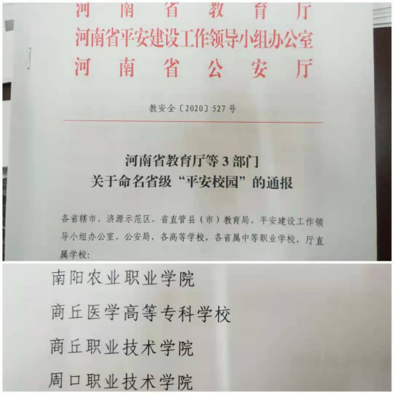 2020年12月25日河南省教育厅、河南省平安建设工作领导小组办公室、河南省公安厅三部门联合下发了《关于命名省级“平安校园”的通报》(教安全【2020】527号),金年会首次被命名为省级“平安校园”。