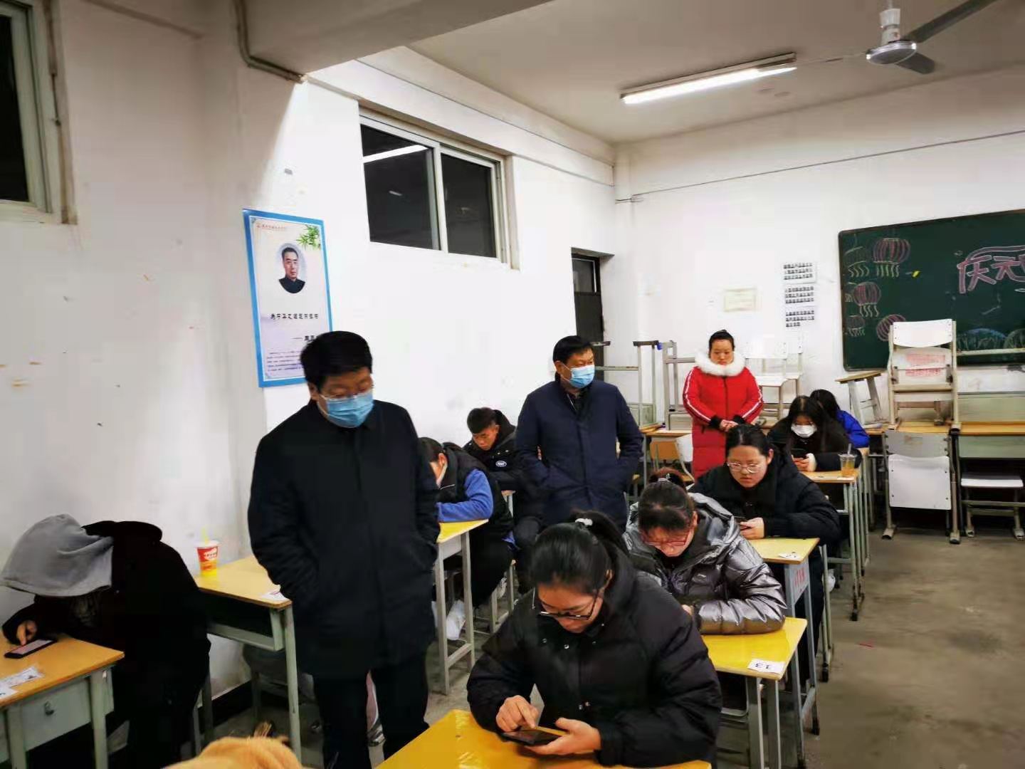1月8日至9日,金年会2020至2021学年度第一学期期末考试顺利进行。校党委书记刘士欣、校长李清臣、副校长许永安在教务处人员陪同下分别到开元校区、文昌校区考场巡视期末考试组织和学生考风考纪情况。