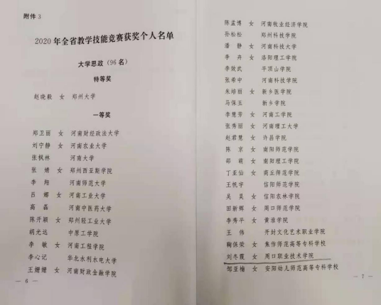 2020年河南省教育系统教学技能竞赛圆满结束。金年会选送推荐的高校思政科目获一等奖,高校语文科目获得二等奖。