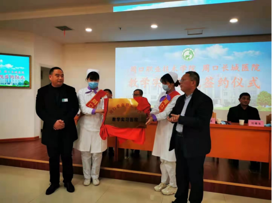 为深化医教融合、校企合作,探索灵活多样的高职教育联合育人模式,提高医学类专业人才培养质量和医疗卫生服务水平,1月30日上午,金年会与周口长城医院在长城医院五楼会议室举行教学实习医院签约仪式。副校长李明臣、市卫健委副主任刘剑锋、川汇区卫健委主任任艳阳和金年会教务处处长付晓东、医学院院长王金玲、护理学院院长于爱霞、周口长城医院院长陈国彬参加了签约仪式。签约仪式由长城医院党支部书记贾震主持。