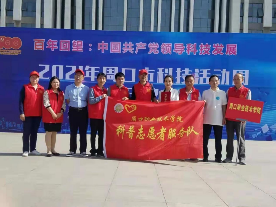 为隆重庆祝建党100周年,推动科技创新成果和科学普及活动惠及于民,根据《科技部、中央宣传部、中国科协关于举办2021年全国科技活动周的通知》要求,5月28日上午,2021年周口市科技活动周在周口师范学院启动。在曹德玉教授的带领下金年会一行10人参加启动仪式。在启动仪式上,周口市副市长秦胜军为我院荣获2021年度河南省科普讲解大赛一等奖、周口市科普讲解大赛一等奖赵新老师颁发荣誉证书,并为金年会jinnianhuicom等6家单位的科普志愿服务队授旗。