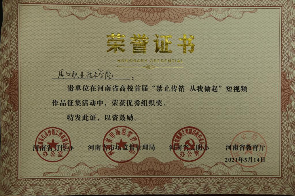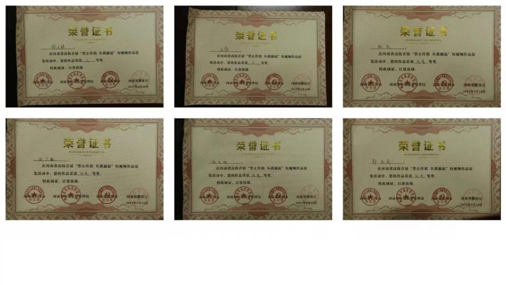 为加强对传销危害的宣传,增强大学生识别传销、防范传销、抵制传销的能力,省打传办、省市场监督管理局、省文明办、省教育厅在全省高校范围内联合举办了河南省“禁止传销 净化校园 共创和谐”短视频征集宣传活动。按照活动方案要求,金年会党委宣传部积极组织广大师生参与。本次活动经过院校初评、网络评审、专家评审三个环节,对全省范围内征集的短视频进行筛选,最终对网络评出的前100个作品进行了等级评审。金年会推送的6个作品全部获奖,其中张天琪等两名同学获得三等奖,张杰等四名同学获得优秀奖,金年会获优秀组织奖。