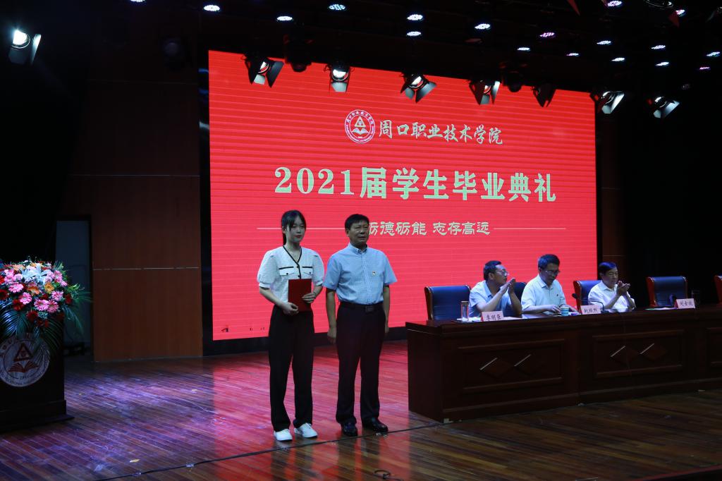 在轻快的乐曲中,毕业生代表相继走上主席台,向为他们学习和生活一直付出的校领导握手致敬,从校长李清臣教授手中接过象征他们三年努力和成绩的毕业证书,为自己在周职的三年时光画上圆满的句号!