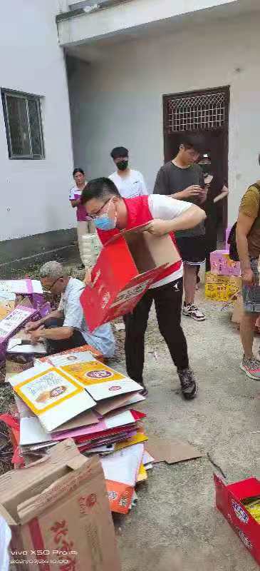 7月24日,体育学院扶沟籍毕业生李世强带领团队成员(19级体教衡沛,20级体教刘彤彤、20级健身刘凡硕、刘愉乐等中泰国际武道教练组)为家乡捐助数万元防汛急需生活物资(饮用水、面包、铁锹、卫生纸、纸杯等),助力扶沟抗洪救灾共克时艰。