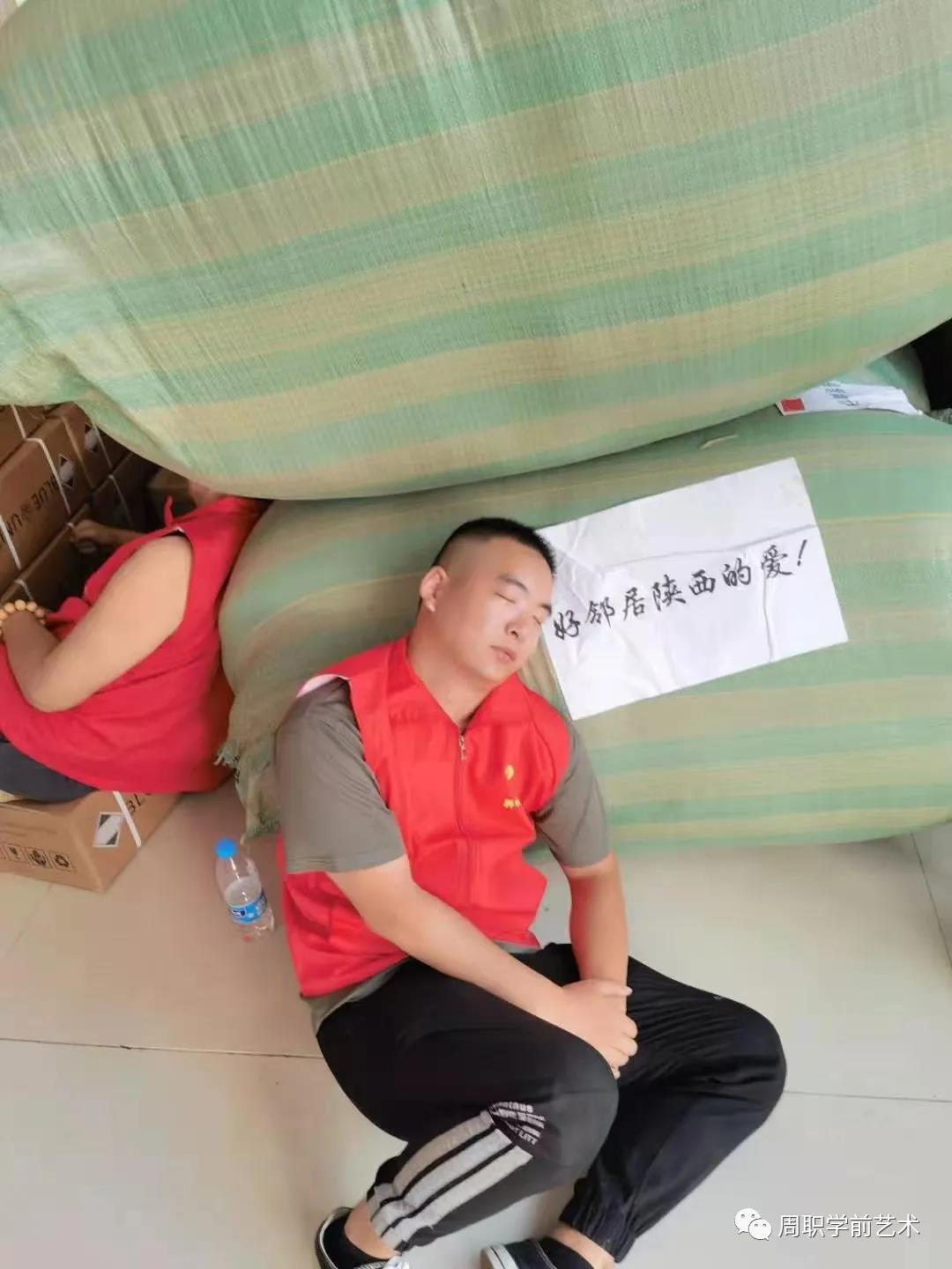 金年会20级音乐教育一班樊龙飞同学的家乡荥阳是此次暴洪的重灾区,7月22日樊龙飞同学积极响应荥阳团市委的号召,自愿加入荥阳青年志愿者队伍,参加抗洪救灾工作。据了解当时樊龙飞同学家中已被淹,但他舍小家保大家,第一时间跟随志愿者队伍到达抗洪现场,负责为来自各个地区的救援车队装卸物资。从早上八点持续工作到夜晚十一点,累得坐在地上就睡着了。樊龙飞是贫困生,他表示国家给予贫困生许多资助,这也算是在力所能及范围内对于国家和社会的一点回报。