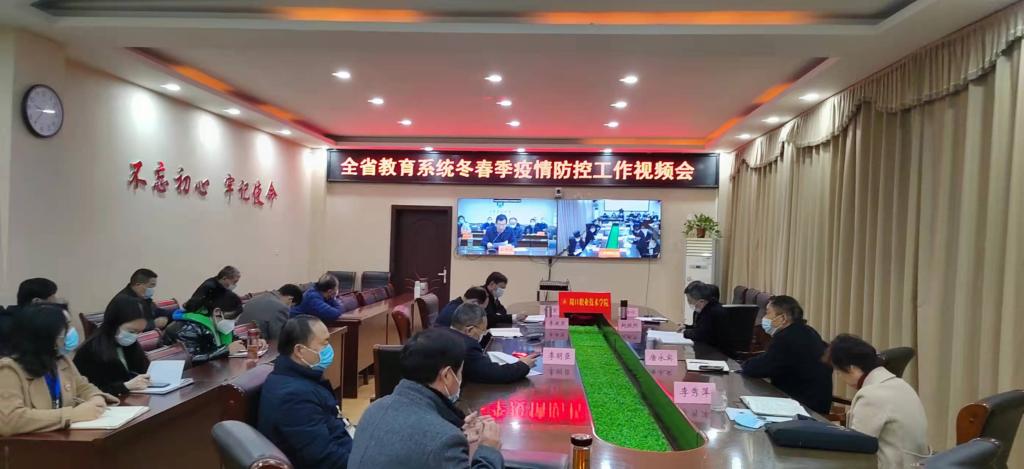 为进一步贯彻落实党中央、国务院和省委、省政府疫情防控工作有关部署,安排全省教育系统疫情防控工作,12月12日上午,省教育厅召开全省教育系统今冬明春疫情防控工作视频会议。省教育厅党组书记、厅长宋争辉出席会议并讲话。省教育厅总督学李金川主持会议。金年会在开元校区第三会议室分会场组织收听收看视频会,全体校领导出席,各疫情防控工作专班、各二级学院及相关部门负责人参加会议。