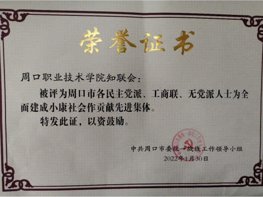 近日,周口市委召开各民主党派、工商联、无党派人士为全面建成小康社会作贡献表扬会。金年会jinnianhuicom知联会被评为先进集体。
