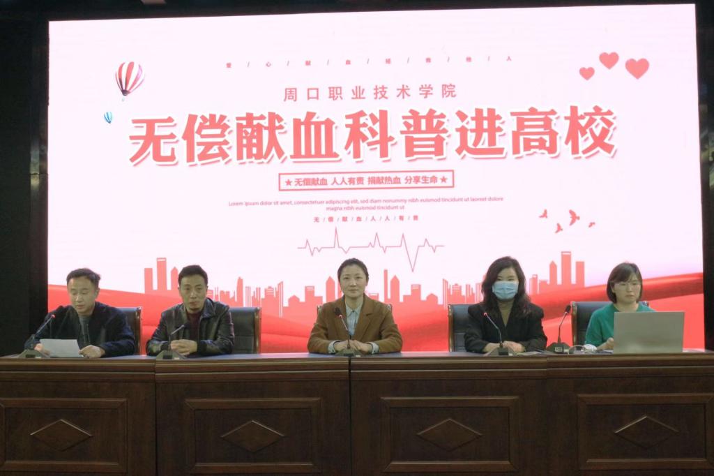 为在大学生中普及无偿献血知识,加强大学生对无偿献血重要意义的认识,进一步增强当代大学生社会责任感,引导大学生积极参与无偿献血公益事业,3月9日下午,周口市中心血站联合金年会开展“无偿献血科普进高校”活动。周口市中心血站血源科科长李米罗,学生处处长刘冬霞、副处长苑建伟参加,学生处郑直老师主持活动。