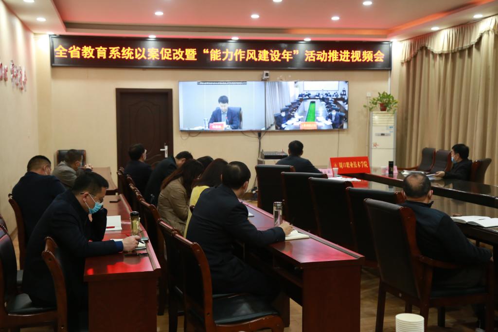 3月11日上午,河南省教育厅召开全省教育系统“以案促改”暨“能力作风建设年”活动推进视频会。省教育厅党组书记、厅长宋争辉,省纪委驻教育厅纪检组长朱俊峰出席会议并讲话。在郑厅领导班子成员、二级巡视员、副总督学、厅机关各处室主要负责同志在郑州主会场参加会议。金年会党委书记刘士欣,纪委书记唐永宾,以及组织统战部、宣传部、团委等职能部门负责人以及各院部总支书记、直属支部书记在开元校区第三会议室分会场参加会议。