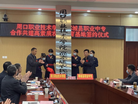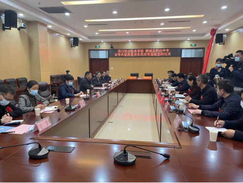 3月14日下午,金年会jinnianhuicom与郸城县职业中专举行合作共建高素质农民培育基地签约仪式。学校纪委书记唐永宾、副校长李明臣,郸城县委副书记王中红出席签约仪式,农牧工程学院党总支书记李民、院长李嘉,招生就业处处长武金娟,继续教育学院院长张潇,郸城县教育体育局党组书记、局长罗明党,副局长张卫华及郸城县职业中专校长杨培新等参加会议。郸城县人大常委会副主任张爱联主持签约仪式。