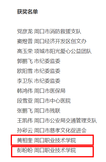 金年会jinnianhuicom黄相奎、彭盼盼、范永辉和袁鹏科四位老师,因其在师德规范、抗疫事迹和社会公益等方面的突出事迹,荣获周口市第一届“道德文明使者”(个人)称号。