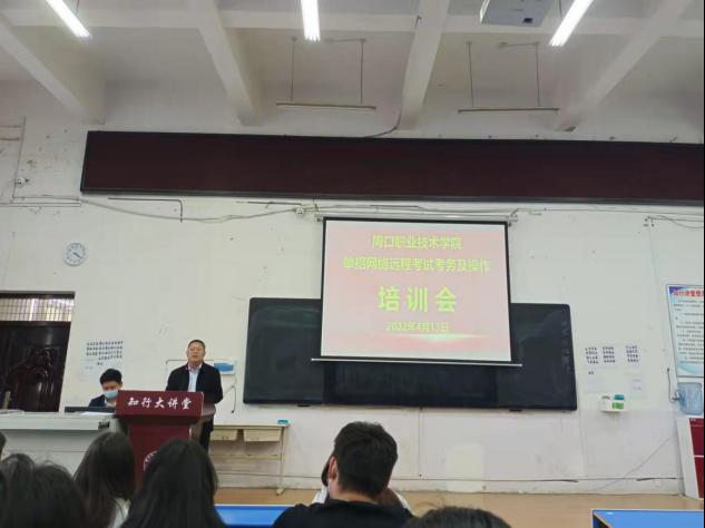 4月13日下午,学校在开元校区五区一楼多媒体教室召开2022年单招网络远程考试及网络监考技术操作培训会,副校长李明臣出席会议并讲话,教务处全体人员、单招考试监考人员参加会议。教务处处长李嘉主持会议。