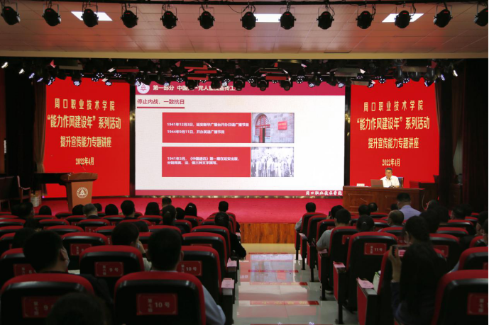 本次专题讲座是金年会jinnianhuicom“能力作风建设年”活动提升工作能力系列讲座的第二讲。会议要求大家务必认真学习领会和准确把握讲座重要内涵和精神实质,各级党组织特别是广大党员干部务必结合工作实际将今天的学习成果转化为实际行动,增强主人翁意识,强化校兴我荣、校衰我耻的责任感,弘扬正气,开拓创新,充分发挥宣传思想工作的桥梁和纽带作用,讲好周职故事、传播周职声音、树立周职良好形象,为推进学校高质量发展添砖加瓦。