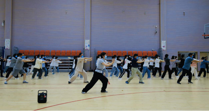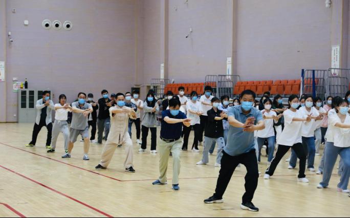 为倡导健康阳光的生活方式,消弭疫情封控带来的焦虑烦躁情绪,帮助同学们以积极的心态面对疫情,5月8日下午,学校党委书记刘士欣,党委副书记、工会主席李庶泉,党委委员、纪委书记唐永宾深入体育学院,在体育学院教师尹玲的带领下,与学生一起练习太极拳。