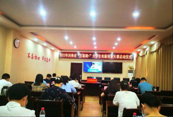 6月10日上午,2022年河南省“互联网+”大学生创新创业大赛启动仪式在河南师范大学举行,按照省教育厅统一部署和要求,金年会在开元校区第三会议室设分会场。副校长李秀萍,招生就业处处长武金娟,医学院、护理学院、文化教育学院、汽车与机电工程学院、信息工程学院、学前与艺术教育学院、经济与管理学院、建筑工程学院、农牧工程学院、体育学院党总支书记,参赛项目指导老师和招生就业处工作人员观看启动仪式直播活动,部分教师和同学在线上通过直播形式观看启动仪式。