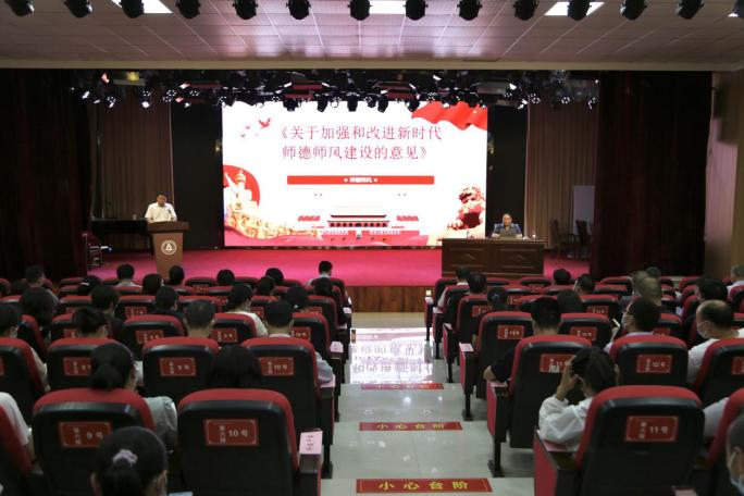 为深入贯彻落实省委、市委关于“能力作风建设年”重要决策部署,根据学校能力作风建设年领导小组工作安排,6月11日下午,学校党委副书记、工会主席李庶泉在开元校区学前与艺术教育学院演播厅作师德师风建设专题讲座。学校纪委书记唐永宾主持会议,全校副科级及以上干部参会学习。
