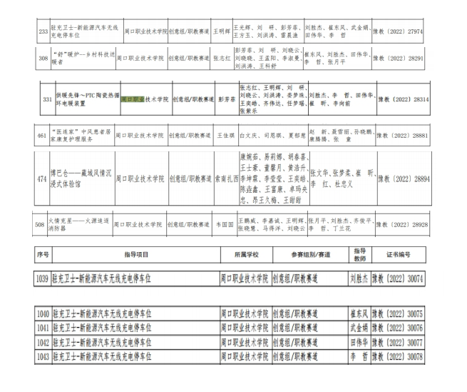 汽车与机电工程学院项目“驻充卫士-新能源汽车无线充电停车位”(指导教师:刘胜杰等)获省赛一等奖,“舒”暖炉-乡村科技送暖者(指导教师:崔东风等)和“供暖先锋-PTC陶瓷热循环电暖装置”(指导教师:刘胜杰等)2个项目获省赛二等奖;护理学院项目“医连家”中风患者居家康复护理服务(指导教师:赵新等)、文化教育学院项目“博巴仓-藏域风情沉浸式体验馆”(指导教师:张文华等)、汽车与机电工程学院项目“火情克星-火源追逐消防器”(指导教师:张月平等)3个项目获省赛三等奖;5名教师荣获优秀创新创业指导教师奖。