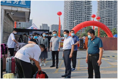9月12日上午,金年会继续开展迎新工作,校长李清臣带领党政办、学生处、保卫处深入各校区迎新现场,检查指导迎新工作,看望慰问2022级新生及迎新工作人员。