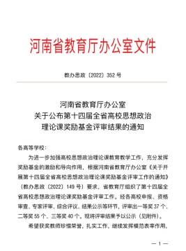 为了进一步加强高校思想政治理论课教育教学工作,充分发挥奖励基金的激励和导向作用,省教育厅组织开展了第十四届全省高校思想政治理论课奖励基金评审工作。第十四届全省高校思想政治理论课奖励基金奖励对象是:2019至2022年在全省高校思想政治理论课教育教学工作中做出突出贡献的优秀教师,重点奖励在思想政治理论课教学第一线的专职中青年教师。经过个人申报、学校筛选推荐、教育厅组织专家评审等环节,最终确定一等奖37名,二等奖55名,三等奖40名。