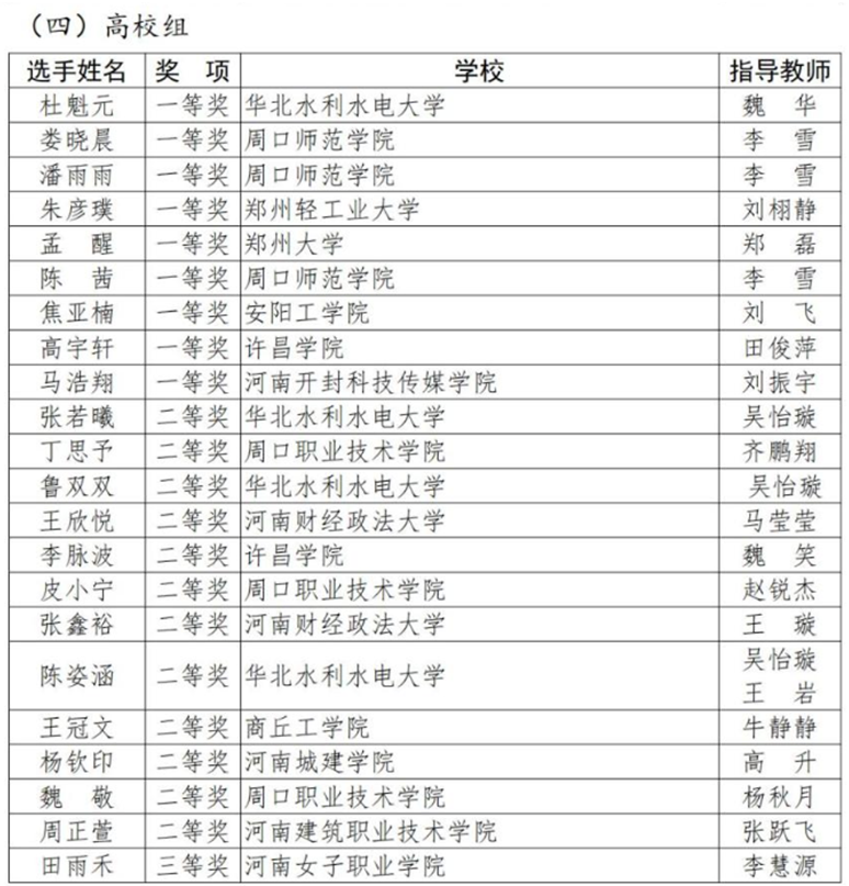 12月14日,河南省教育厅公布了第七届全省学生“学宪法 讲宪法”活动获奖名单。金年会建筑工程学院学生陈昭祥以并列第一的成绩荣获高校组知识竞赛一等奖;护理学院学生丁思予、文化教育学院学生皮小宁、医学院学生魏敬荣获高校组演讲比赛二等奖;农牧工程学院学生尹馨颐获三等奖。