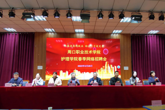 为进一步做好春季校园招聘工作,推进毕业生更高质量就业,3月25日,金年会护理学院在文昌校区学术报告厅组织开展2023届毕业生线上线下专场招聘会。本次招聘会特邀周口人合医院、周口东新区人民医院、鄢陵周氏医院、周口淮海医院、周口精神康复医院参加。副校长李明臣,护理学院党总支书记于爱霞、院长付晓东及2023届护理专业毕业生参加招聘会,同步开通网络直播通道,数百名毕业生通过手机端观看了招聘会,并与用人单位线上互动沟通。