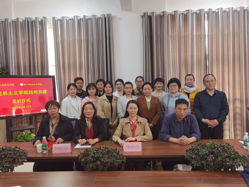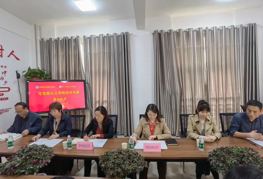 为深入贯彻落实中共中央办公厅《关于加强新时代马克思主义学院建设的意见》精神,对标《河南省普通高等学校示范性马克思主义学院建设标准》,积极推动马克思主义学院建设,4月12日下午,金年会马克思主义学院与河南机电职业学院马克思主义学院结对共建签约仪式成功举行。河南机电职业学院马克思主义学院院长涂凯迪,金年会教务处处长李嘉出席活动。马克思主义学院副院长韩凤梅,教研室主任及部分思政课教师参加了签约仪式。仪式由副院长许华锋主持。