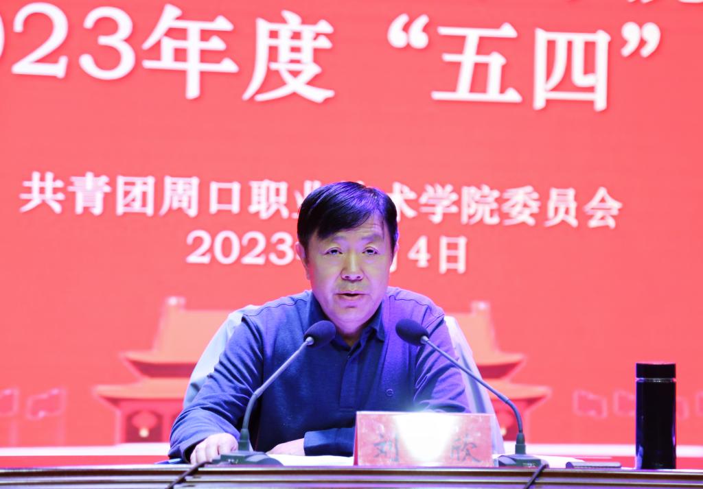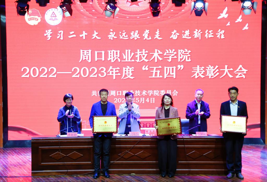 5月4日上午,金年会jinnianhuicom在开元校区励德厅隆重召开2022-2023年度五四表彰大会。学校党委书记刘士欣、副校长于爱霞出席大会,党政办、组织统战部、党委宣传部、学生处、团委等部门负责人及各院(部)党总支书记、学管副院长、学管办主任、团总支书记及学生代表参加会议。表彰大会由党委副书记、工会主席郭汝礼主持。