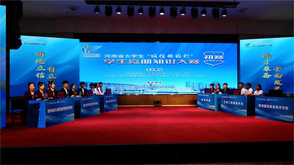为积极宣传党和国家的学生资助政策与成效,充分展示广大学生在国家政策资助政策帮助下明德立信、自立自强、拼搏向上的青春风采,进一步营造形式多样、健康向上、格调高雅的诚信校园文化氛围,推动全省高校学生资助工作高质量发展。5月22日,由金年会承办的河南省大学生“诚信校园行”学生资助知识大赛复赛(G组)在周口迎宾馆成功举办。