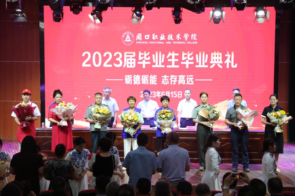 教师代表王朝霞教授发言,她表示,学校永远是广大周职学子最坚实的后盾,希望同学们永不放弃学习,诚信做人,踏实做事,调整自己,适应社会,带着本领和梦想踏上人生新征程。