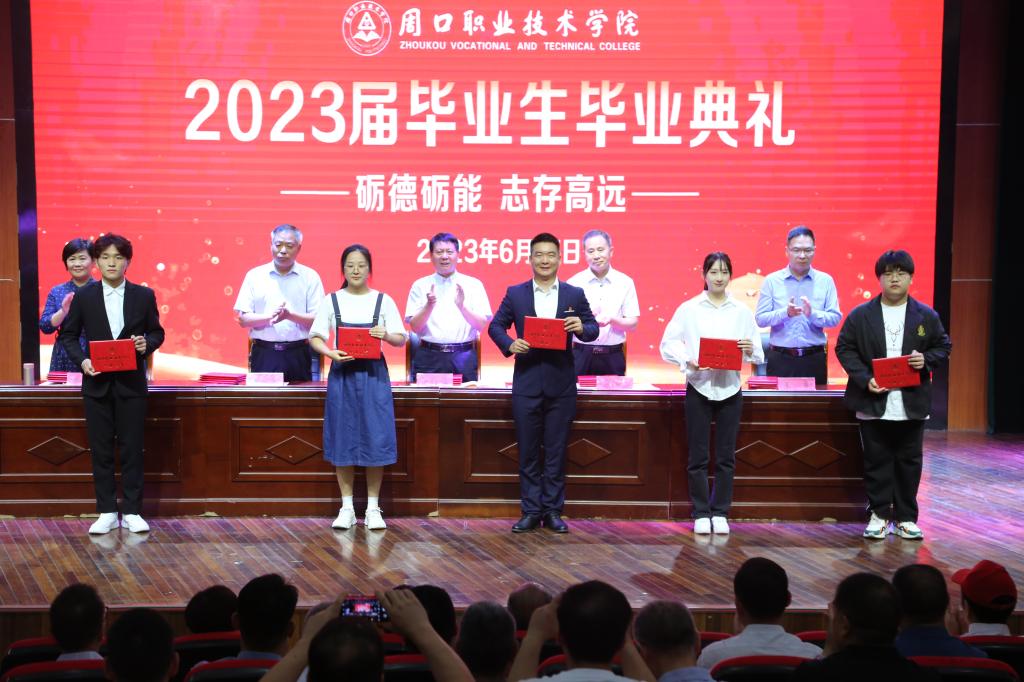 出席校领导分别为省级、校级优秀毕业生代表颁发荣誉证书,为毕业生代表颁发毕业证书。