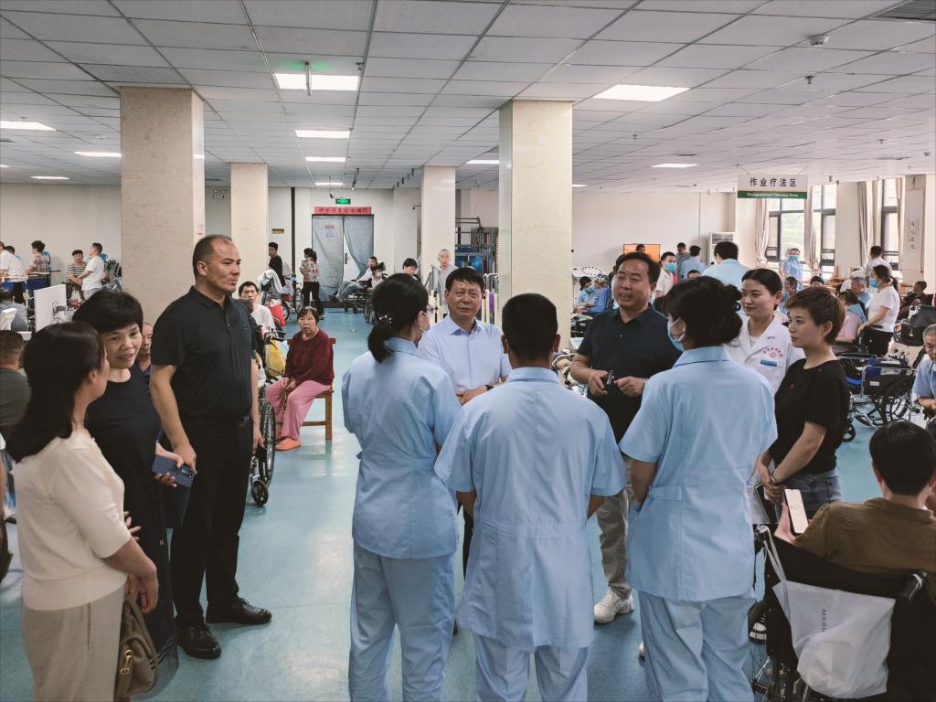 周口惠济康复医院董事长王希振陪同李清臣一行参观了医院重点科室,看望在院实习的学生,并介绍了医院校企合作、产教融合和医教协同育人情况。