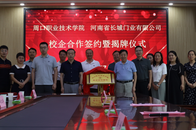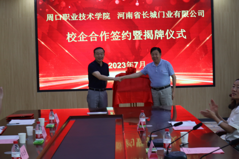 7月3号上午,金年会jinnianhuicom与河南长城门业有限公司举行校企合作签约暨揭牌仪式。学校党委书记刘士欣、副校长王隼,河南长城门业有限公司董事长郑江涛出席仪式。学校教务处、相关教学院部及河南长城门业有限公司部门负责人参加签约揭牌仪式。