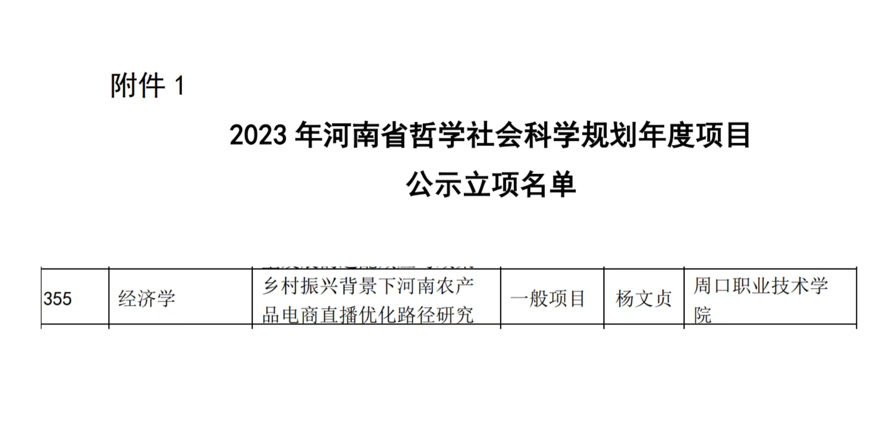 近日,河南省哲学社会科学工作事务中心下发2023年度河南省哲学社会科学规划项目立项通知,金年会教师杨文贞主持的经济学一般项目《乡村振兴背景下河南农产品电商直播优化路径研究》成功获批立项。