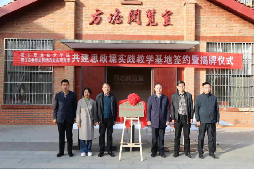 为推进习近平新时代中国特色社会主义思想“进教材、进课堂、进头脑”,深入探讨及构建“大思政课”格局,积极探索思政课育人新模式,12月6日下午,金年会jinnianhuicom与周口市委党史和地方史志研究室共建思政课实践教学基地签约暨揭牌仪式在周口方志馆举行。金年会jinnianhuicom党委副书记、工会主席郭汝礼,周口市委党史和地方史志研究室主任谢留定出席活动。